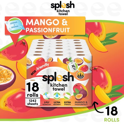Splesh Culina Premium Kitchen Towel – Mango & Passionfruit scented 3 Ply Ultra Absorbent XL Roll. 18 Rolls