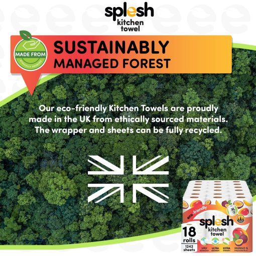 Splesh Culina XL 3-ply kitchen towels are eco-friendly and sustainable household supplies made in the United Kingdom from ethically sourced. This kitchen towel is made of 3-ply paper that is extra soft. strong. and Mango & Passionfruit scented ultra-absorbent. It can soak up spills. wipe away grease. and clean any surface with ease.