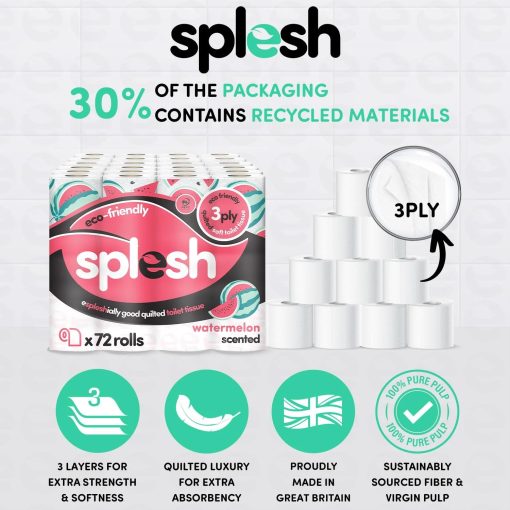 Splesh Quilted Toilet Roll Luxury Watermelon 3-Ply Soft Toilet Paper, 72 Rolls