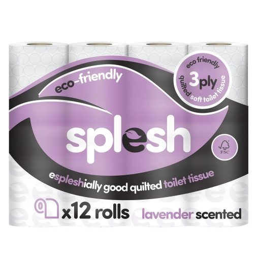 This Splesh toilet roll bulk buy contains 1 pack of 12 quilted luxury lavender 3-ply toilet rolls. These luxury toilet rolls come with a touch of scented luxury. The toilet paper is created with micro-impressions and quilted for a touch of luxury. The 3-ply lavender toilet tissue paper is made with a touch of cotton so it is ultra-soft and gentle, feeling smooth against your skin. With the promise of 3 layers, Splesh was designed to not only be stronger and more durable but provide maximum absorption.