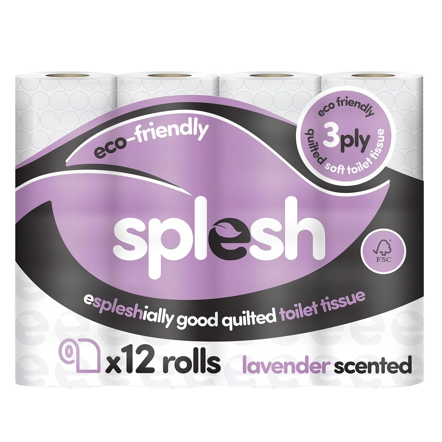 Splesh Toilet Roll Soft & Quilted 3-Ply Lavender Scented Toilet Tissue, 12 Rolls
