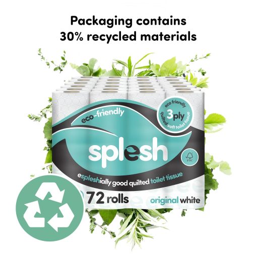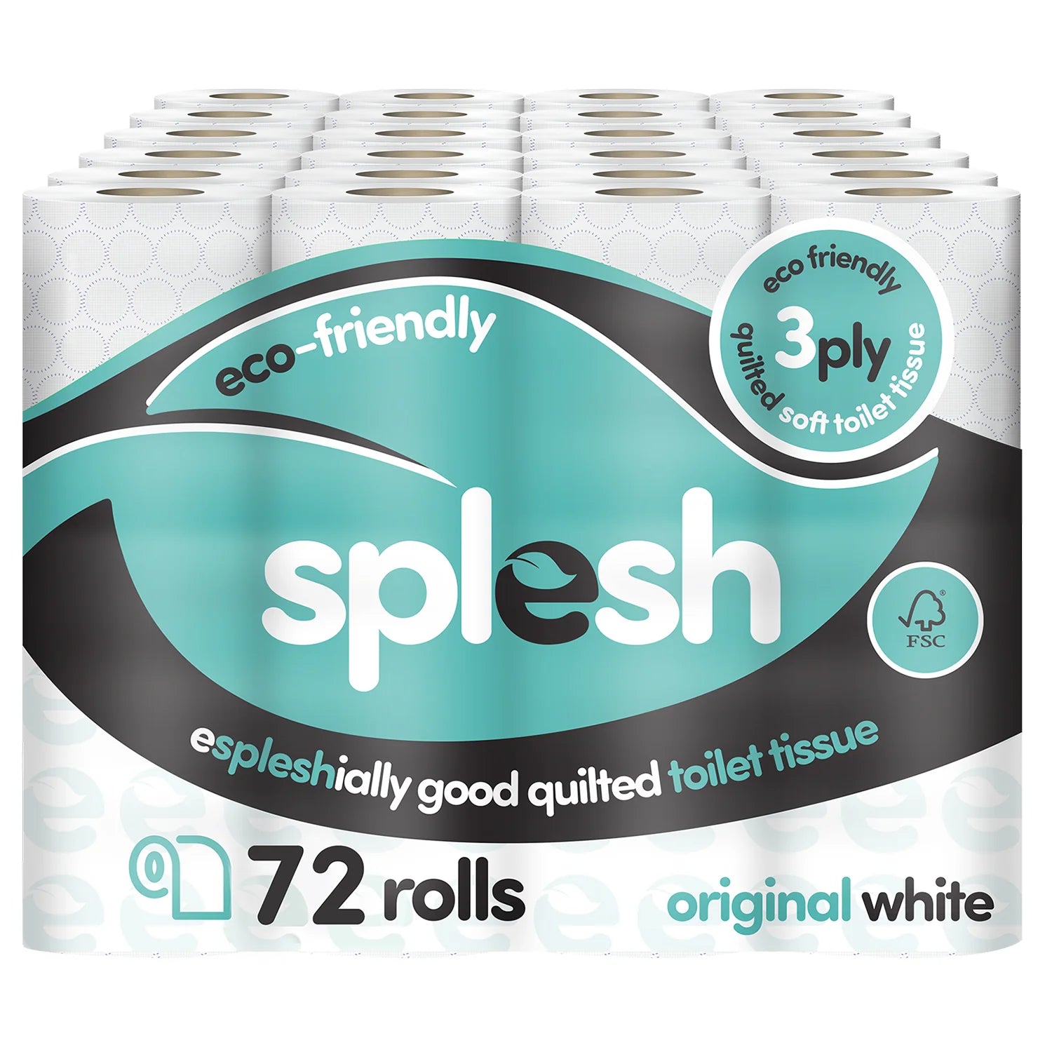 Splesh Toilet Roll, Soft & Quilted Eco-Friendly, White, 72 Rolls